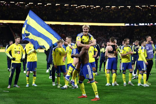 新华社照片,路透,2026年4月1日 3月31日,瑞典队球员在晋级后庆祝。 当地时间3月31日,在瑞典索尔纳举行的2026年世界杯预选赛欧洲区附加赛决赛中,瑞典队3比2战胜波兰队,晋级美加墨世界杯正赛。 新华社/路透